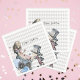 Whimsical paper party napkins with colourized version of vintage Alice & Mad Hatter Wonderland illustrations. Added floral on distressed grey and white harlequin background. Perfect for Mad Hatter tea parties, birthday parties and other whimsical events.