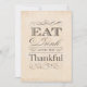 Elegant vintage style invitations to a thanksgiving dinner or any occasion to be grateful for. Text on the front reads "Eat, Drink and be Thankful." Text on the reverse is fully customisable. Beautiful antique finish evokes vintage American victorian style or the old West.