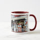 A photo of a vintage American diner and rest stop cheerily decked out for the holidays brightens this extra large mug with memories of a bygone era. Great for sharing those big warm mugs of cocoa with holiday guests, or for filling with your own special treats as a gift for your friends.