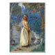 Vintage artwork by Harold Gaze (1885-1962) depicting a lovely young blonde woman in a yellow dress standing on a garden path near a stream. An angel hovering over her shoulder whispers in her ear, and the faces of fairies can be seen peeking out from their hiding places. Harold Gaze was an illustrator and author born in New Zealand, who studied art in London, and also lived for a time in Australia and in Pasadena, California. He was called "The Bubble Man" because he frequently included bubbles in the illustrations for children's books. Card is blank inside for your own message.