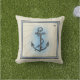 A vintage anchor with a vintage lighthouse on the reverse; both on a custom cream background.