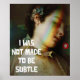 Vintage and Feminist 'I Was Not Made To Be Subtle' Poster