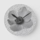 This awesome clock features a beautiful and detailed photograph of an Anemone flower. The photograph has been artificially coloured making it a lovely monochrome image. The background consists of a grey pattern to further enhance the effect.