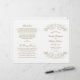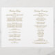 Timeless vintage scrollwork frames your ceremony details in rich antique gold against a clean white background. The front cover features elegant flourish accents surrounding your names and wedding date, with a coordinating scrollwork backing. Inside pages are fully customisable for your bridal party, ceremony order, and a personal thank you message. Programs are printed on text-weight paper and arrive flat, requiring a simple centre fold.