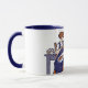 The Gibson-type woman in the vintage image on this mug was scanned from a 1909 recipe book. The aproned chef is peeling potatoes and is surrounded by fresh-from-the-garden vegetables on the table, in baskets behind her, one her lap, and in a yellow ware bowl on the floor by her feet. The vintage kitchen and activity bring a warm nostalgia to this sweet mug. The 'Mug Options' tab will allow personalisation of the mug, but the handle and rim decoration were selected because they give the mug the appearance of an old tin drinking cup. Fill the mug with mixes for drinks or food and bundle it all with a (new or repro) yellow ware bowl, for a unique gift for your favourite cook. See also the companion mugs with images from the same source, if you would like a set of them.