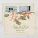This beautiful apple blossom save the date card features vintage apple blossom drawings on a background of parchment colored damask. The back of the card has a coordinating damask background. You can customize the front of the card with a the bride and grooms names and wedding date and location.This design coordinates with the other products in the Vintage Apple Blossom collection.