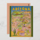 This postcard features a vintage illustration of a map of Arizona and a cactus.