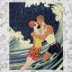 Vintage Art Deco Lovers Kiss in the Waves at Beach Jigsaw Puzzle
