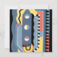 Vintage illustration art deco pochoir pattern by Georges Valmier from the french pattern book Collection Decors et Couleurs series, 1930. Pochoir is a stencil technique common in surrealism paintings. A modern cubism design featuring a variety of geometric shapes and colours. This pattern includes a writing instrument that resembles a pencil or crayon with three circles. Fun and colourful design to use for a student, teacher, eduction or back to school.