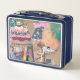 Features original LALATOWN festival scene artwork printed on a navy vintage-style lunch box.