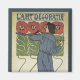 Vintage illustration art nouveau advertising poster L'Art Decoratif, by Hans Christiansen. This floral design features a male artist wearing a painter's smock and painting red poppies using a palette with paints and a paintbrush. 37 Rue Pergolese, Paris, France.