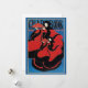 Vintage illustration art nouveau poster, The Chap Book Thanksgiving Number featuring two pilgrim women dressed in long flowing red and black capes carrying trays of food with a Thanksgiving feast. By artist William Bradley, 1895.