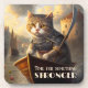 Cute coaster featuring a vintage style painting of a warrior cat in a boat. Perfect for anyone who loves liquor or likes their coffee very strong.