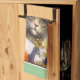 This beautiful vintage kitchen towel for cat lovers and cat owners features the wonderful whimsical work of famous German artist Arthur Thiele. The painting on oilette is of a handsome brown tabby cat with green eyes dressed in his Sunday best for a day's stroll in the Bavarian Alps. He's wearing a green peaked hat decorated with daisies and traditional lederhosen. In one paw is a decorative pipe and the other holds a walking staff. He's painted against a soft blue sky with rolling hills in the background. The kitchen towel would be the perfect gift for admirers of vintage cat art. You can change the colour of the soft green background border to suit simply by using the customise button.