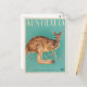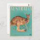 This vintage Australian design features a kangaroo with eucalyptus leaves on a bright blue background. The top of the design has the word 'Australia' clearly printed. The bottom of the design reads 'see the island continent up close' along side the Commonwealth coat of arms.