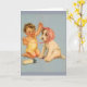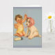 Retro / Vintage Baby Note Card. Adorable little girl putting a pink bonnet on her dog! Perfect for any occasion!