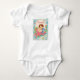 Sweet vintage baby girl in pink and blue graphics on a one piece tee for baby girl.