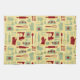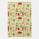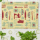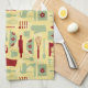 Vintage Baking kitchen towel with a cute vintage coloured style pattern with baking implements and simple flowers all in yellow, green, and red. You can make the pattern larger or smaller on the kitchen towel.