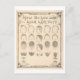 This postcard is a reproduction of a vintage barber's chart showing different types of haircuts and beard styles.