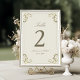 Add a touch of timeless elegance to your reception with this vintage baroque wedding table number card. Featuring ornate gold scrollwork corners and a refined neutral beige background, it perfectly complements classic, antique, and romantic wedding themes. Ideal for baroque, Victorian, or royal-inspired weddings, these table numbers guide your guests in style while elevating your décor.