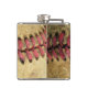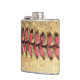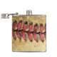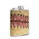 The flask itself is fine. It’s a cheap flask, obviously bought in bulk, however am prepared to overlook that. Given that it is a personalized item, I would have liked to have seen gift boxing instead of the generic packaging. Terrible printing, and/or quality. It’s a cheap, tacky vinyl. It is not cut straight and is also applied in a way that it is overhanging the bottom, causing the glue to catch on items and it will eventually roll and tear, damaging the wrap.