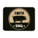 Enjoy the old fashion vibes of barbecue in May owning your own black, tan, and white pig logo with customisable name template. *Note: If your name is long, we suggest going into the design tool, and make the font size smaller to fit. And if you need help, we will help you customise for you. This is a gender neutral, unisex design for anyone, especially BBQ championship teams. Design has a curly tail pig black silhouette in the middle, black name at top in tan background, and white "BBQ" surrounded by two white stars with black background, with a black circular border around design.
