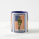 Vintage Be a U.S. Marine! ~ Mug. Marine holding a handgun, U.S. flag in background. This poster has been beautifully restored and enhanced by us at the Vintage Factory. We have also added a complimentary border around the image which really makes it an eye catching work of art. We also have this vintage poster on other products too.