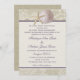 Vintage Beach wedding invitation with an ivory background, Ivory Lace and soft purple text. Sand dollars and starfish and the rustic look of burlap, personalise text and fonts to suit your style.
