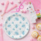 Elegant honeybee pattern paper plate in fine blue linework on a clean white background. Inspired by vintage botanical and scientific illustrations, with a timeless French country aesthetic. Ideal for nature lovers, gardeners, and fans of classic, refined design.