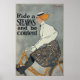 This beautiful vintage poster for Stearns bicycles dating from 1896 is by American artist Edward Penfield. The advert on the poster reads “Ride a Stearns and be content .” Published by J. Ottmann Lith. Co of New York, it shows a young woman in Victorian style dress riding a vintage bicycle. She's wearing a puff sleeved shirt and gorgeous billowing print skirt.