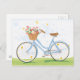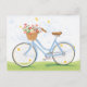 Hand drawn illustration of a blue Vintage bicycle with a basket full of flowers.