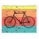 This calendar features vintage bicycle illustrations with a retro background on each page.