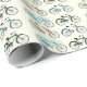 This wrapping paper features a tiled pattern of vintage bicycles. The pale yellow background can be customised as desired.
