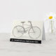 This silly birthday card design features a representation of an old, vintage bicycle, along with the message, "So I heard that you want a new bike...". The inside features the disappointing message, "I hope that somebody else gets you one for your birthday!"