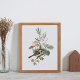Vintage Bird and Mushroom Botanical Poster