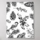 Charming vintage black and white bird and pinecone pattern. A rustic and timeless Christmas wall art for cosy farmhouse style.