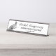 Elegant personalised vintage style exotic peacock bird illustration in black and white desk name plate.