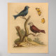 Vintage Bird Red Blue Butterflies Print