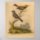 Vintage 1776 bird illustration from Gleanings of Natural History. Yellow and black speckled bird on a tree branch.