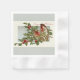 Two beautiful red and brown birds are sitting side-by-side on a branch of holly and berries covered lightly in snow. Greeting: A Merry Christmas. Image from a Vintage Christmas Postcard with a custom grayish green border.