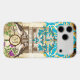 Vintage Birds Birdcage Cherry Blossom Damask iPhone Cases. Love birds, monogram, victorian vintage love birds birdcage, earth tones and teal blue, boho bohemian lovebird iphone cases, retro antique trendy designs, cottagecore rustic chic, grandmillennial style old school, retro with modern flair, eclectic and maximalist