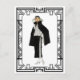 Enjoy this Art Deco inspired postcard series of black and white fashions from the 1920s flapper era through the 1950s. This vintage fashion postcard features a 1920s inspired flapper ensemble with matching black fur cape and hat. Flappers are known for their distinctive style of dresses with shorter, calf-revealing lengths and lower necklines, though not typically form fitting: Straight and slim was the preferred silhouette. Flappers wore high heel shoes and threw away their corsets in favour of bras and lingerie.