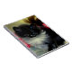 Notebook featuring a playful black and white kitten! This fluffy tuxedo cat poses amongst red flowers on a blue blanket. A superb gift for cat lovers and Victorian art enthusiasts!