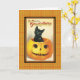 Vintage Black Cat in Pumpkin Merry Halloween Card