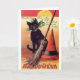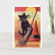 Victorian / Vintage / Retro Halloween greeting card. Adorable black cat sitting beside a witch's hat and broom! Friendly Fairy, Witch or Fay, Fulfil the Wish You Wish Today! Hallowe'en!