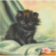 Sticker featuring a loveable black kitten! The green eyed kitten sits on a blanket with a pink flower. A beautiful gift for cat lovers and Victorian art enthusiasts!