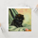Card featuring a loveable black kitten! The green eyed kitten sits on a blanket with a pink flower. A beautiful gift for cat lovers and Victorian art enthusiasts!