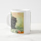 Coffee Mug featuring a loveable black kitten! The green eyed kitten sits on a blanket with a pink flower. A beautiful gift for cat lovers and Victorian art enthusiasts!