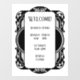 Announce your business hours, menu, or wedding shower/reception information you'd like to share on this vintage black and white framed window cling.