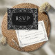 These 5" x 3.5" wedding RSVP response cards feature a vintage gothic style with black and white faux lace. The back has placeholders with lines for the guest to fill their name and to select their choice for attending.